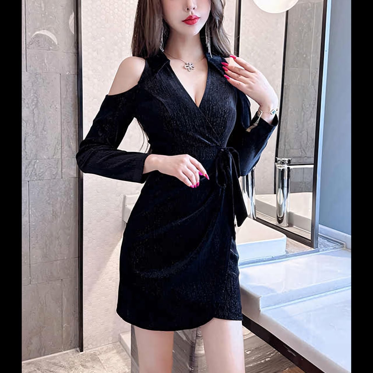 バスト:91cm ウエスト:76cm ヒップ:92cm 着丈:84.0cm
