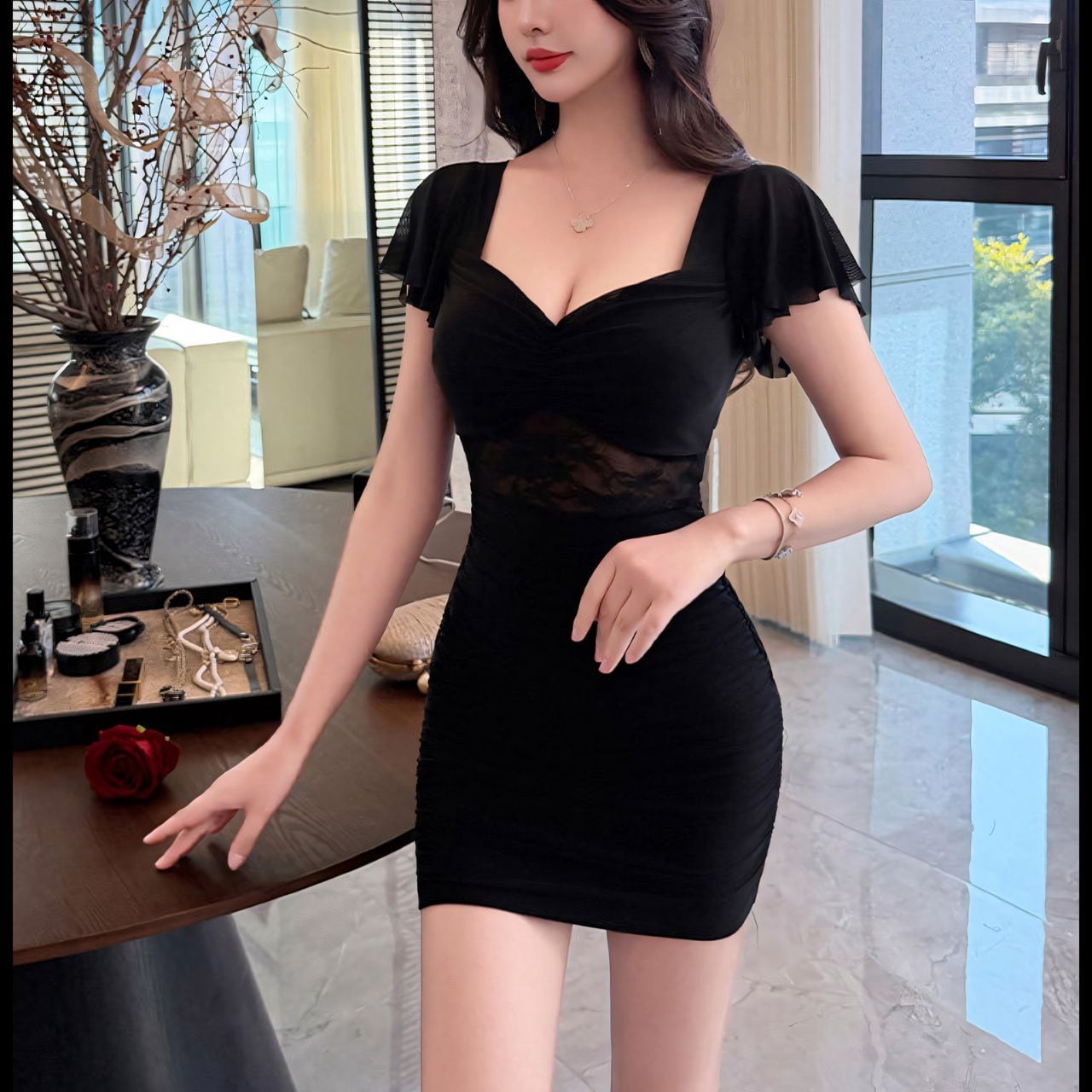 バスト92/ウエスト66/ヒップ94/着丈81